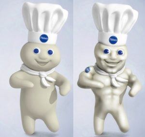 Joc Pederson looks “soft” – kind of like a Pillsbury Dough Boy Soft.  I think he needs to dedicate himself to a “body makeover” this off-season that includes diet and Crossfit-Type Training.  He needs to morph from the doughboy on the left to the one on the right. My wife even commented that he looked “soft” standing on 2B last night.  At least he is getting on base, unlike Granderson. The Dodgers need Corey back, but it won’t be this series. He can’t come back unless there is a real injury and I mean a “bone sticking out of the skin” type injury.  FAZ will not be allowed to manipulate the DL with a hangnail on Granderson’s pinky.