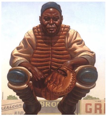 Thinking of Campanella led my mind to wander to the many great black baseball players we were never able to see perform on the big stage, merely because their skin was black.   This caused me to pick up my copy of “We Are The Ship, The Story of Negro League Baseball” by Kadir Nelson, to revisit the history of the Negro Leagues.   For those of you that are interested in this subject, Nelson’s book is a “coffee table” type book of under a 100 pages that contains stories, told in a first person style, that are equally entertaining and informative.   This book also includes some of the most fantastic paintings of these black athletes that I have ever seen.  You would be well served to obtain a copy.   Unless prohibited from doing so by copyright law, I have provided Jeff with some of these pictures to include with this article.