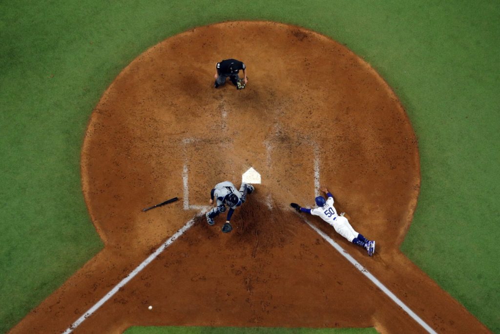 Love the overhead shot of Mookie scoring from third.