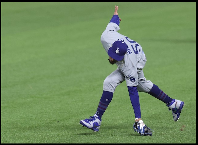 Game 6. The Dodgers got 3 in the first inning on back to back HR’s by Seager and Justin Turner, and an RBI single by Cody Bellinger that scored Muncy who had walked. Buehler again shut the Braves down. But he walked 4 and there was a pivotal moment in the second inning when he gave up 3 consecutive hits. With the bases loaded, he managed to strand all three runners even though there were no outs when the bases were loaded. That set the tone for the rest of the game. The Braves did get a run off of Treinen, but were robbed again by Mookie who robbed Freeman with a runner on by taking away a home run ball.
