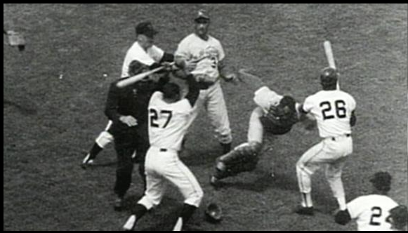 Roseboro stood up and clenched his fists and what happened afterwards ignited a 14 minute brawl. Marichal struck Rosey twice with his bat opening up a scalp wound that would require 14 stitches to close. Koufax and Mays played peacekeepers.