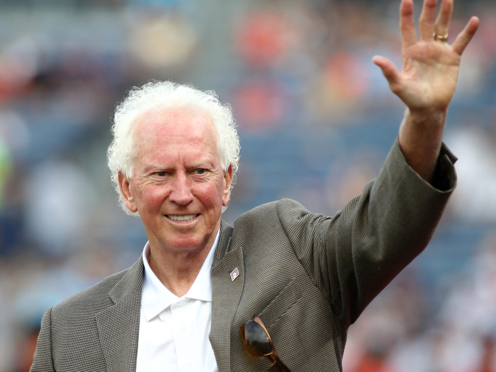 July 20, 2015: Atlanta Braves broadcaster Don Sutton is inducted into the Braves Hall of Fame before the regular season National League match-up between the Atlanta Braves and the Los Angeles Dodgers at Turner Field in Atlanta. The Braves won the game 7-5 behind the pitching of Matt Wisler who moved to 4-1 on the season. (Photo by Andrew Snook/Icon Sportswire/Corbis/Icon Sportswire via Getty Images)