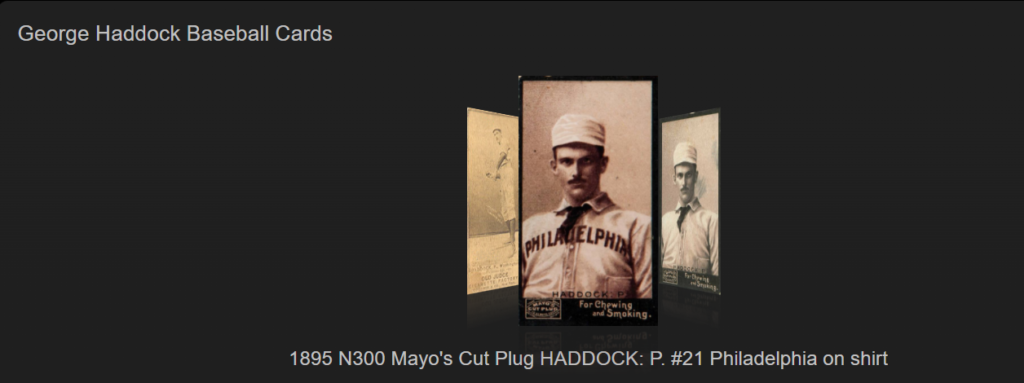 George Silas Haddock, also known as “Gentleman George”, played for the Brooklyn Grooms in 1892 and 1893. Before coming to Brooklyn, the right-handed pitcher won 34 games with the Boston Reds in 1891 in the final major league season of the American Association.