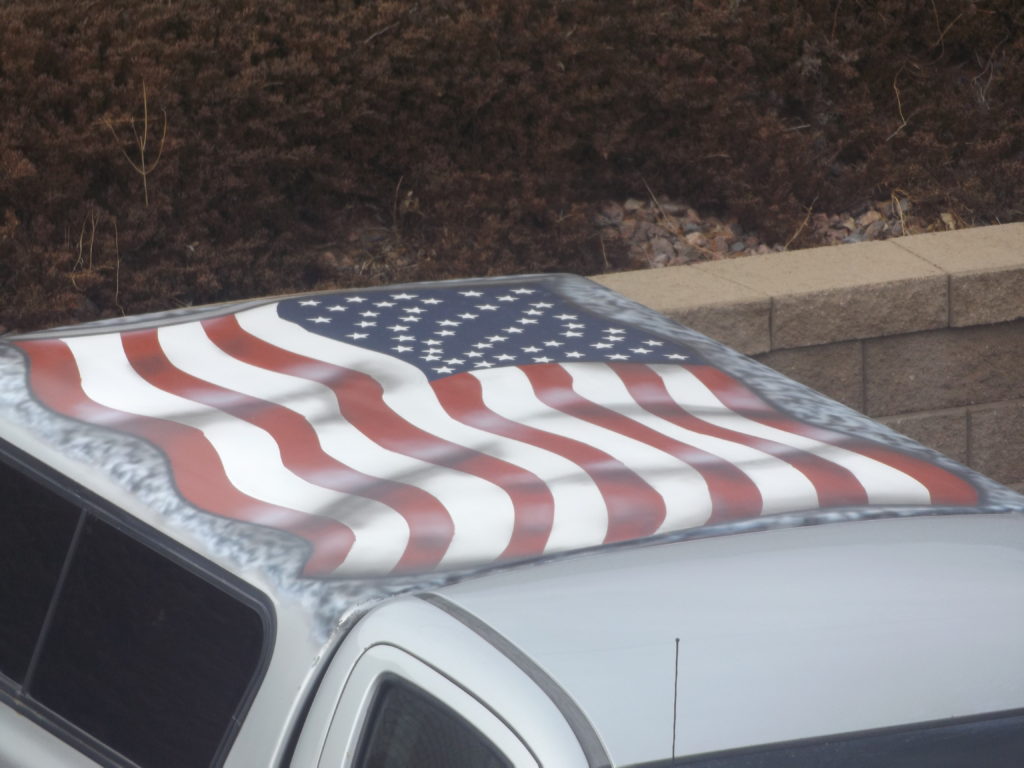 American Flag on the topper on my truck. Painted by a local guy and one of our Pickin on the Porch members. Lonnie Sedillo