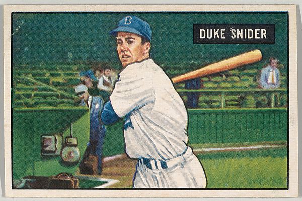 1950 was a great year for Duke. He had one of the best games of his career on May 30th. At Ebbets against the Phillies, Duke hit 3 long homers. In his fourth at-bat, he hit a ball that hit one foot below the top of the right-field screen. The ball was hit so hard that he was held to a single. His line for 1950 was .321/31/107. He had 199 hits and 343 total bases. The Dodgers lost the pennant to the Phillies on the last day of the season when Dick Sisler hit a three-run homer in the top of the 10th inning.
