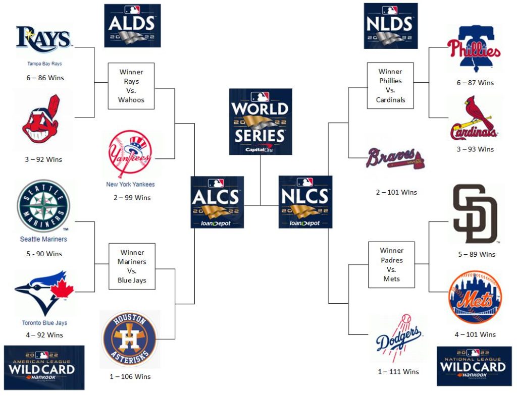 Looking at the Bracket for the 2022 MLB Postseason, one thing really stands out to me. More often than not, there will be a Wildcard Team with a better record than the worst Division Leader. In fact, this seems to happen every year. It was a big miss that MLB didn’t see this and have a rule in place to give the team with the best record advantage over the second seed. Se la vie.