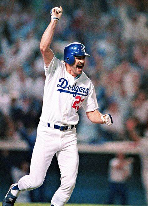 Gibson would say later that he remembered one of the coaches telling him that Eckersley liked to throw a backdoor slider when he had a full count. Eckersley delivered the pitch, and Gibson hit a long shot to right that went into the pavilion and set off one of the wildest celebrations in Dodger history. Vin Scully’s call was classic. ” High fly ball to right field, she is gone!” A momentary silence, then Vin said, ” In a year that has been so improbable, the impossible has happened. And now the only question is can he make it around the base paths unassisted. ”