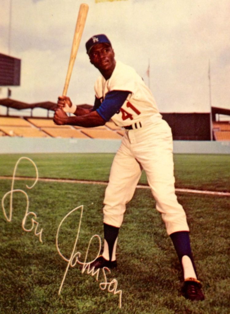 Lou Johnson was not even on the 25-man roster when the Dodgers broke from spring training in 1965 at Vero Beach. He had been acquired from the Tigers for former World Series hero, Larry Sherry on the 9th of April after they broke camp. LA also received 10,000 dollars. On May the first, Tommy Davis, the Dodgers’ two-time batting champ, broke and dislocated his ankle on a slide to second at Dodger Stadium against the Giants. Three days later, the Dodgers recalled Johnson from AAA. At the time the 30-year-old Johnson was hitting .312 with 4 homers and 11 RBIs at Spokane.