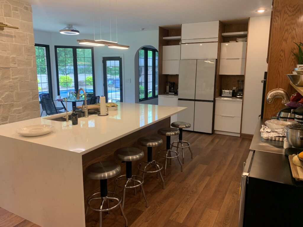 We are winding down our construction at the new house. The Kitchen, Dining Room, Family Room, and Laundry Room are done. The pool house is close, and we are working on the top floor now.