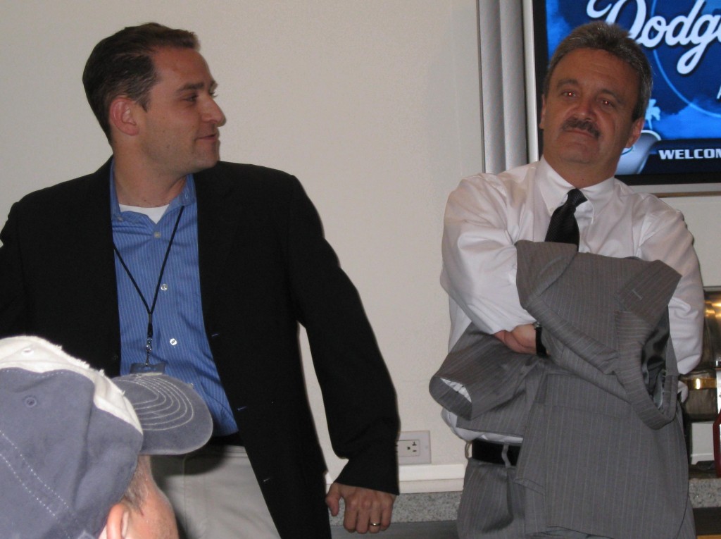 The guy on the left is Badger. I’ll withhold his real name on account of his being wanted in 37 states. Those were the days, but about the same time as Andrew Friedman was hired, my business started blowing up and I could no longer go to Spring Training without the family for weeks and still vacation with them, so I choose the family and I have never got another press pass. I have maintained a few contacts and count Josh Rawitch, President at Cooperstown as a friend (there he is by Ned Colletti).
