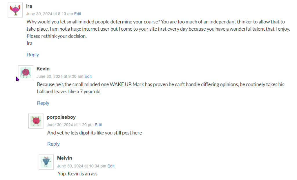 When I start to read a post and it turns personal I stop reading at that point. My mind is cluttered enough without ingesting that kind of negativity.
