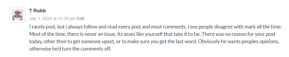 Ninety percent (or more) of the commenters on LADT are knowledgeable and have strong opinions. I run LADT like I run my real company (US Water Systems): Everyone understands that my door is open, and they can walk in and openly disagree with me, but if you disagree, “Have a Take and Do Not Suck.” That simply means that if you disagree with what I say, then clearly articulate why and leave it at that. It’s even fine to say, “Well, I just don’t agree with that.” That’s fine. However, when it turns personal, then I will revert to my “street fighter” persona, and it will be on.