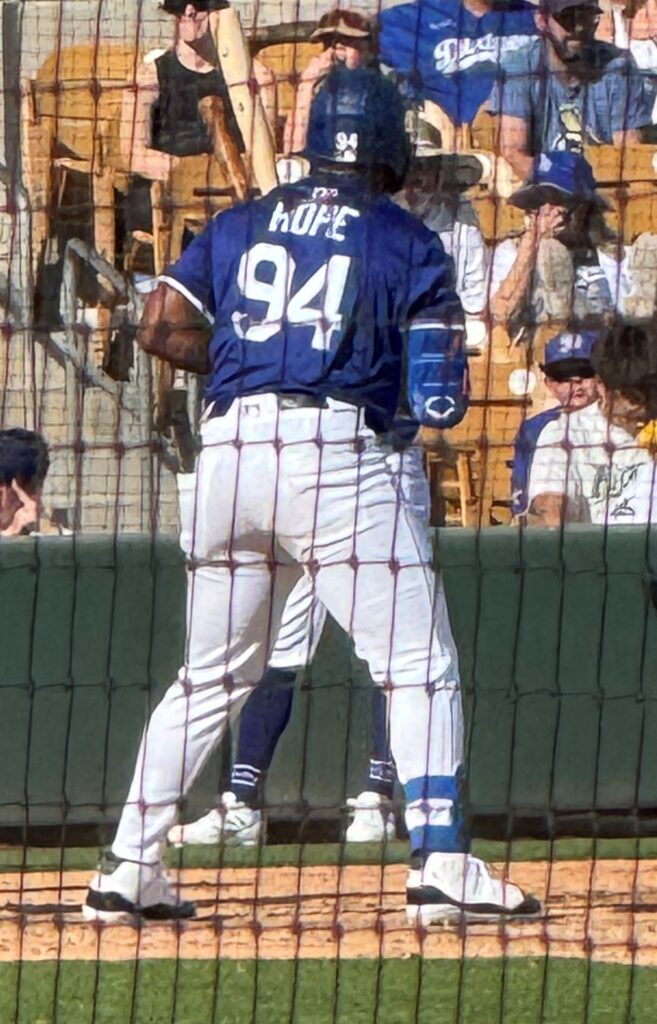 - Zyhir Hope has incredible bat speed but looks like a cartoon character with his immense thighs. OMG… it’s jaw-dropping. He did make a nice catch in LF.