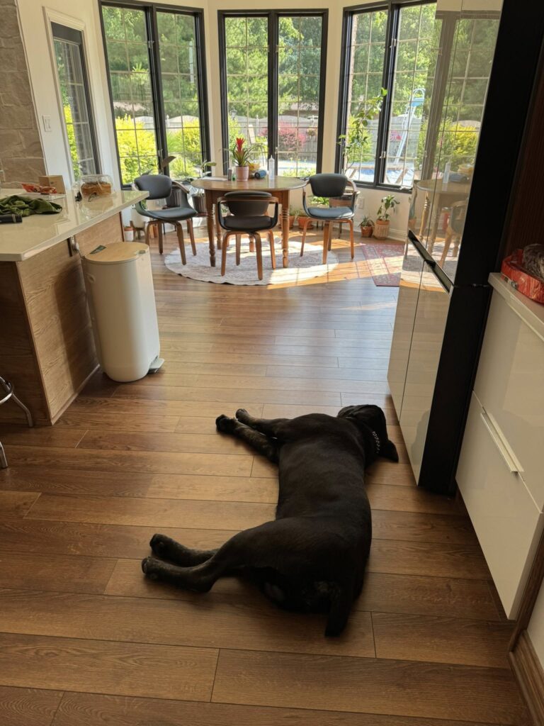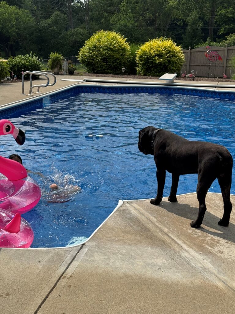 I wasn’t paying too much attention yesterday, but Shawn Murphy asked about the dog. He weighs 138 pounds at 13 months. He will likely be 150 by 18 months. Cane Corsos can be good family dogs, but they require experienced owners and proper training and socialization. While they are naturally protective and loyal to their families, they are also a large, powerful breed with strong guarding instincts, making early training and socialization crucial for a well-adjusted companion. You have to be firm with this dog. He loves the kids, and he would tear you to pieces if you touched one. This is my second one. This is my last one with one of my grandadughters.