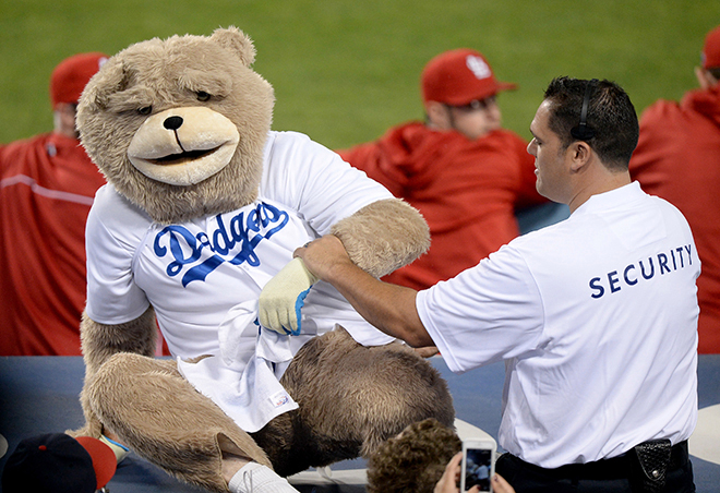 On the Dodgers web site on Monday Ken Gurnick posted an article, “Lasorda vs. Phanatic and funniest LA moments”. It immediately brought back the memory of an article I posted on Think Blue LA on March 19, 2014. That article was prompted by a video of Mark Monninger, the Dodgers Rally Bear. I watched the video that accompanied the article and certainly enjoyed the performance as apparently did the fans…
